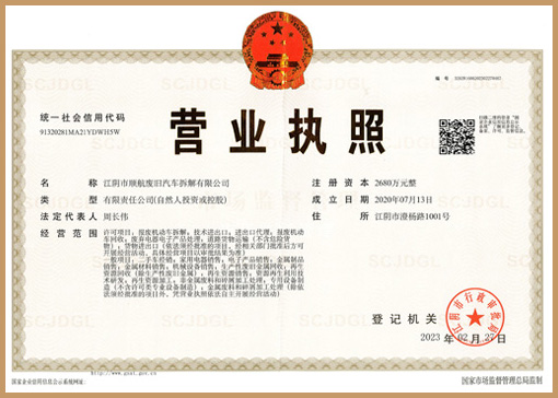 江阴市顺航废旧汽车拆解有限公司坐落于江苏省江阴市,主营报废汽车回收、拆解及咨询服务,废旧零部件交易和其他废旧物资回收等业务。是江阴市规模大,实力强的报废汽车回收拆解基地。回收网络覆盖整个江阴市,其再生资源产业展现出的良好前景。